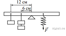 Используя рычаг, три груза, штатив и динамометр, соберите установку для исследования равновесия рычага. Три груза подвесьте слева от оси вращения рычага следующим образом: два груза на расстоянии6 см и один груз на расстоянии 12 см от оси. Определите момент силы, которую необходимо приложить к правому концу рычага на расстоянии6 см от оси вращения рычага для того, чтобы он оставался в равновесии в горизонтальном положении.