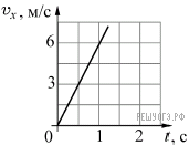 На рисунке представлен график зависимости проекции скорости υx от времени t для тела, движущегося прямолинейно, параллельно оси OX.