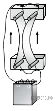 По мере поворота направление силы будет меняться и в тот момент, когда рамка повернется на 90° вращающий момент сменит направление, таким образом, рамка не будет проворачиваться дальше. Некоторое время рамка будет колебаться в таком положении, а затем окажется в положении, указанном на рисунке 4.
