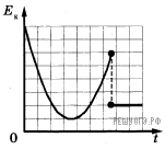 На рисунке представлен схематичный вид графика изменения кинетической энергии тела с течением времени. Выберите два верных утверждения, описывающих движение в соответствии с данным графиком.